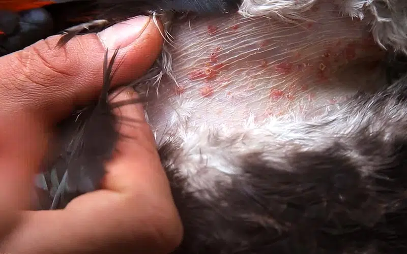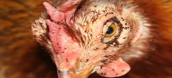 • Votre poule présente des traces de piqûres au niveau des yeux ou du cou