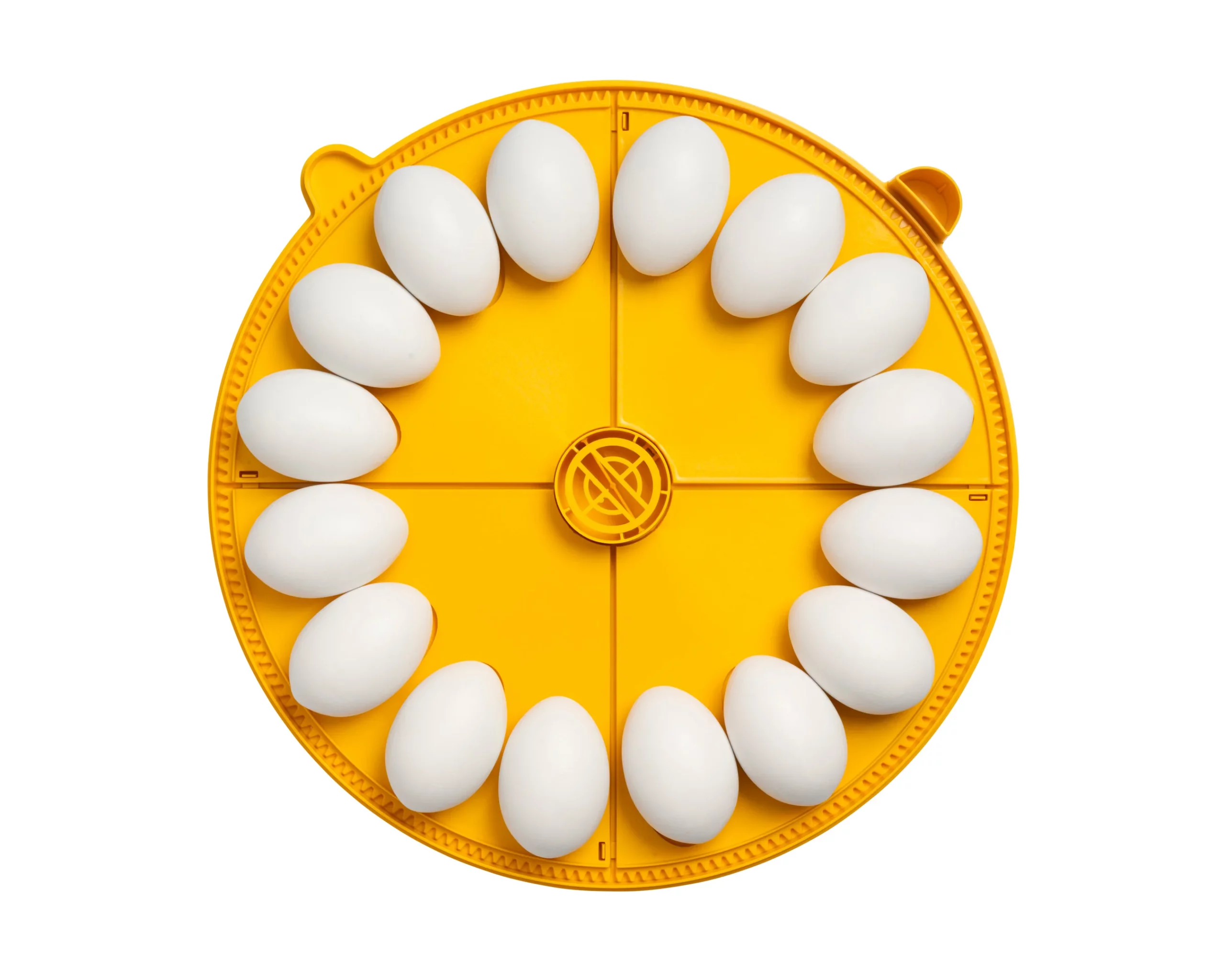 - Sanfte, automatische Eierwendung durch Rollen auf dem Boden des Inkubators, mit programmierbaren Intervallen und Rotationswinkeln