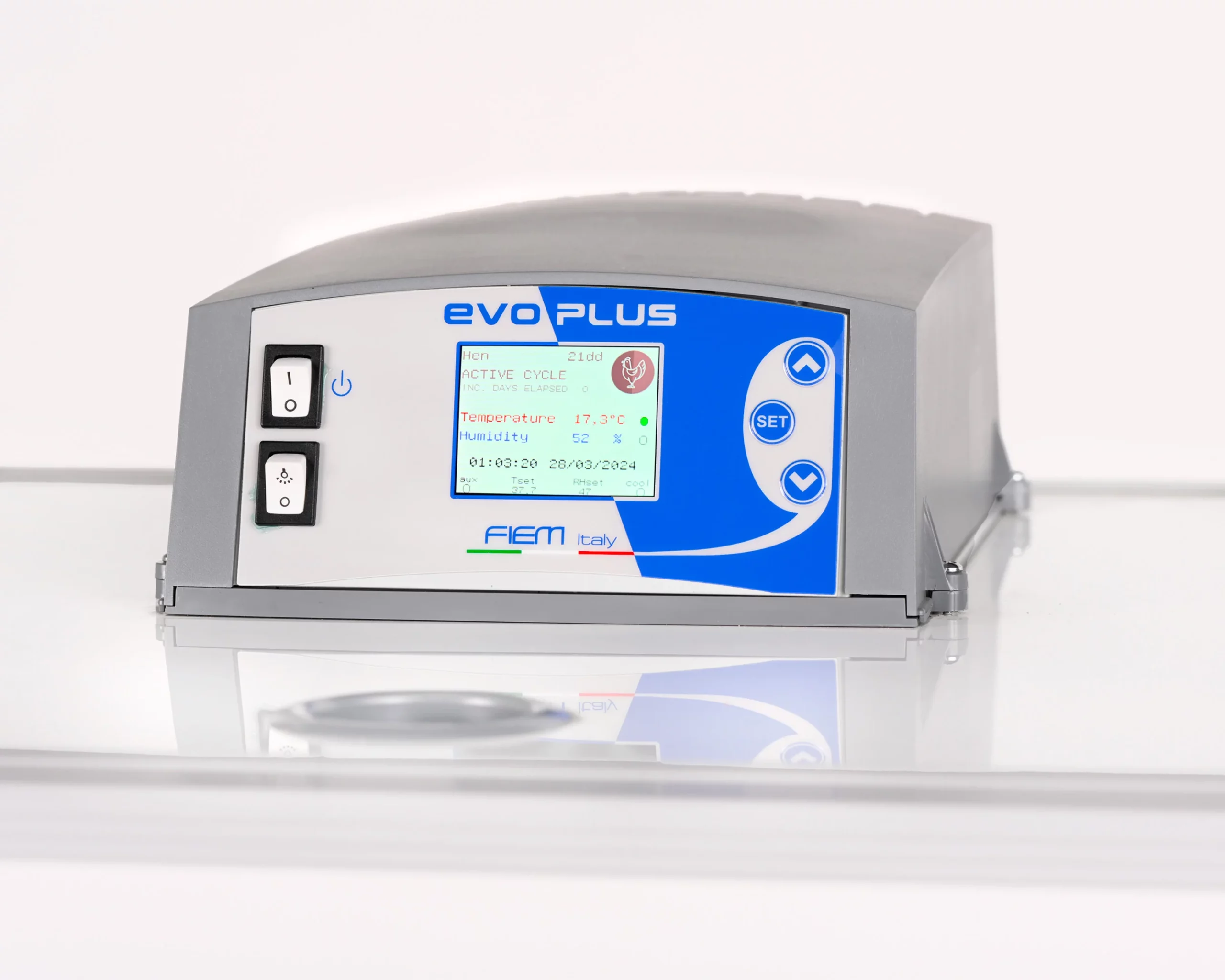 L'incubateur MG140/200 Rural EVO PLUS de Fiem est équipé d'un thermostat LCD EVO PLUS de derniÚre génération qui permet un réglage précis de nombreux paramÚtres grùce à un écran couleur TFT de 2,4 pouces.
