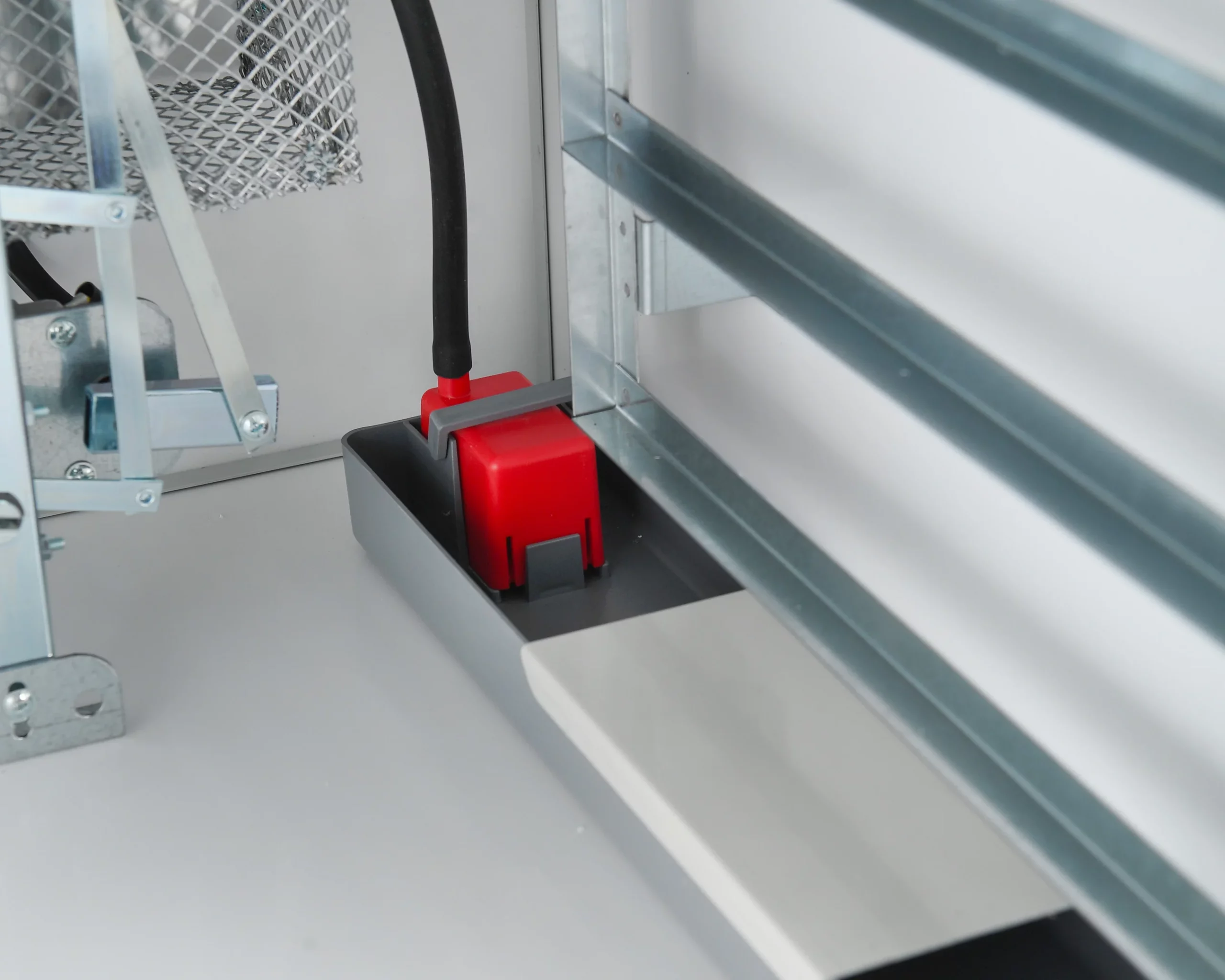 L'humiditĂ© dans la couveuse MG140/200 Rural EVO PLUS peut ĂȘtre gĂ©rĂ©e de maniĂšre complĂštement automatique. L'unitĂ© de contrĂŽle Ă©lectronique peut en effet piloter, Ă  choix, les accessoires suivants, disponibles en option :